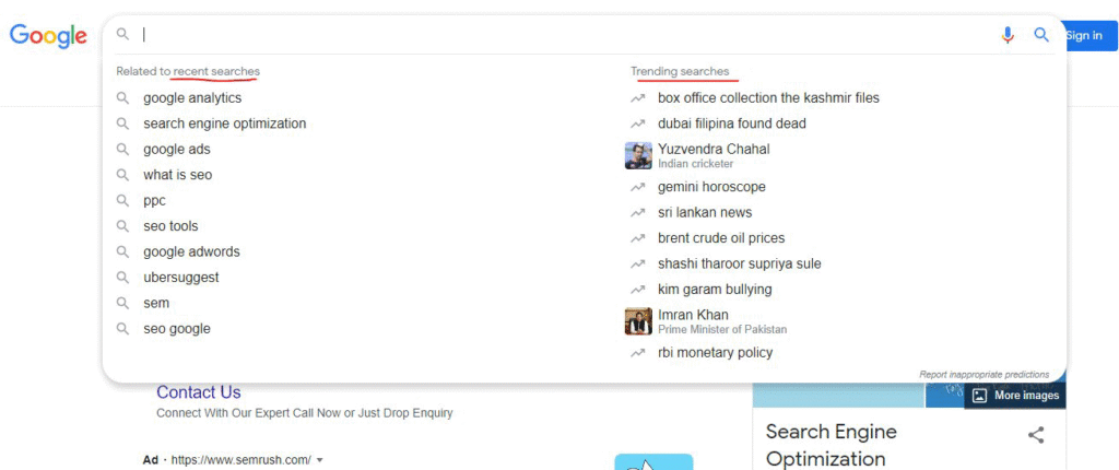 Google Tests Recent Searches and Trending Searches